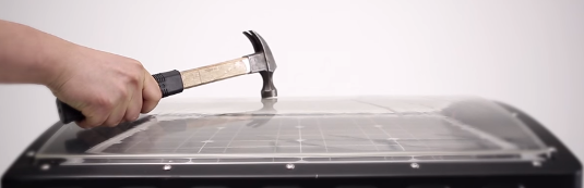 Solcellerna i toppen skyddas av ett inbyggt tak i slagtålig plast.
