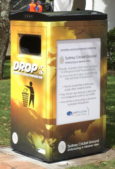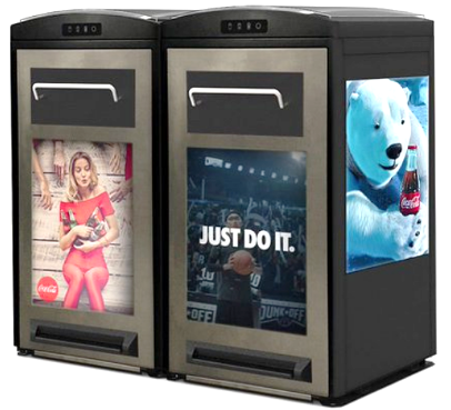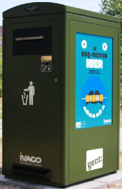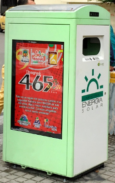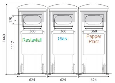Exempel på station med 3 papperskorgar med solccell och Wifi. Komprimerande allt förutom för Glas.