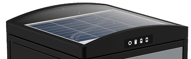 Fullt uppladdat batteri driver papperskorgen i upp till 4 veckor utan sol.